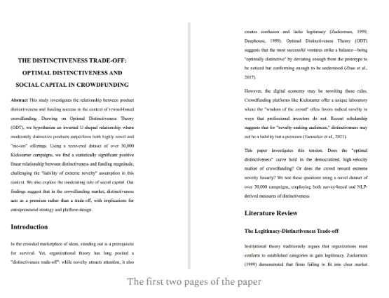 「很好,現在用這些資料寫一篇原創論文。深入調研領域,把主題拔高到創業或策略理論的層面,做嚴謹統計,寫成期刊格式。」